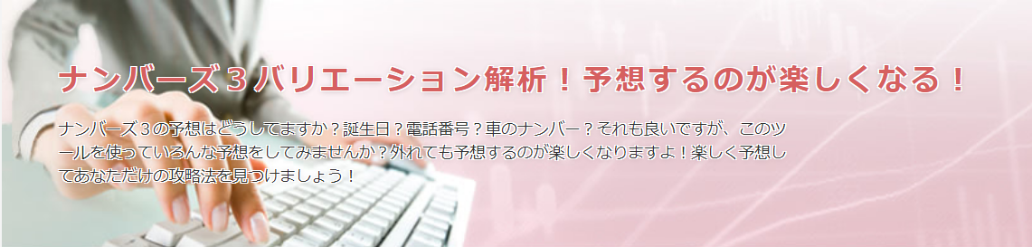 「ナンバーズ3バリエーション解析ツール」は、ナンバーズ3をいろんなバリエーションで解析できるツールです。